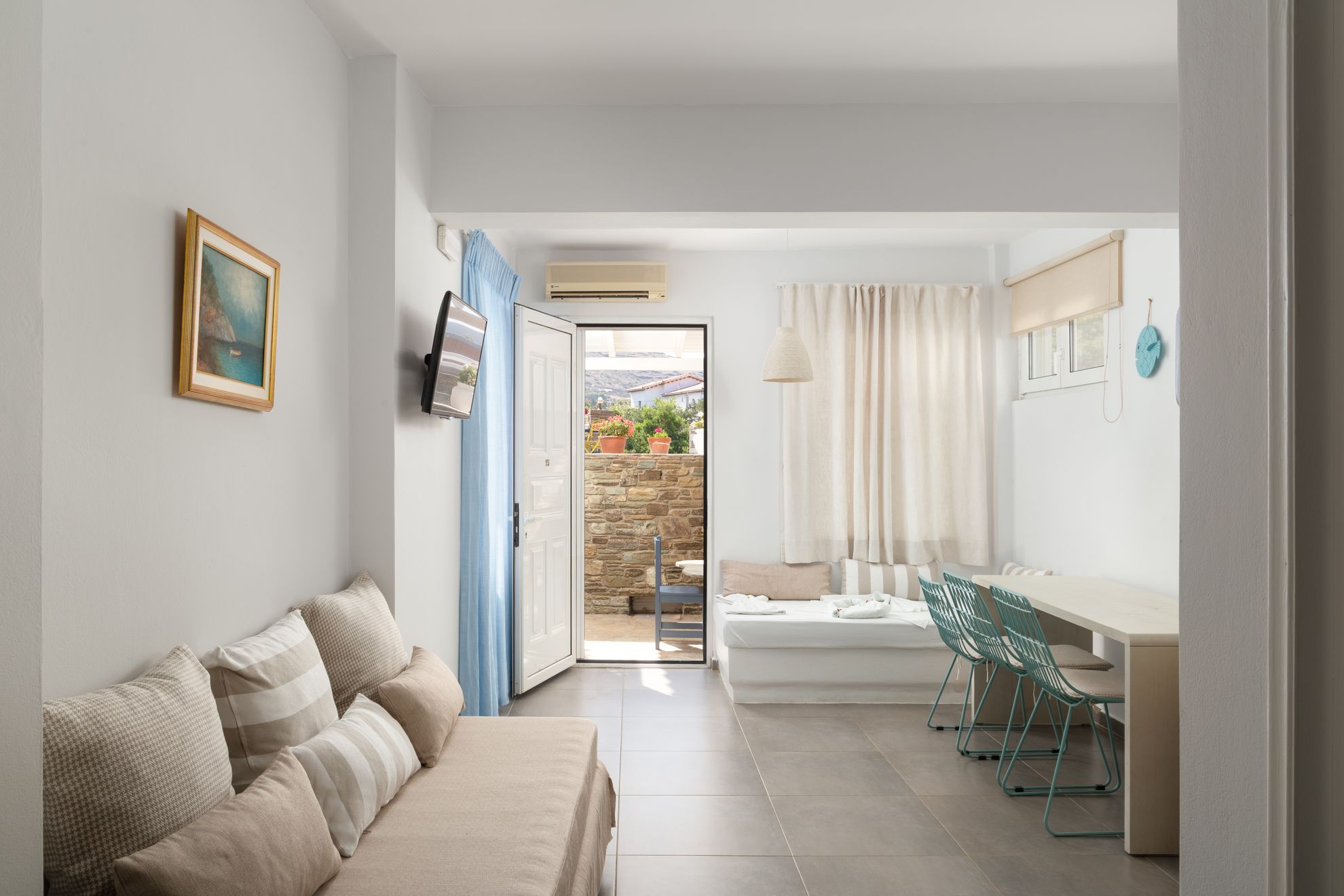 Το Apartment for 5 είναι το μεγαλύτερο κατάλυμα του Studio Irene, σχεδιασμένο για μεγάλες οικογένειες και παρέες που θέλουν να μοιραστούν την εμπειρία της διαμονής στην Άνδρο χωρίς συμβιβασμούς στον χώρο και την άνεση. Ένα ευρύχωρο διαμέρισμα δύο υπνοδωματίων που φιλοξενεί άνετα έως και πέντε άτομα, ιδανικό για οικογενειακές διακοπές, ομαδικά ταξίδια ή πολυμελείς ομάδες που θέλουν να διαμείνουν μαζί.